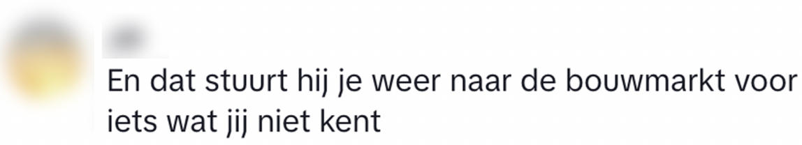 4.  “Schat, wil jij effe naar de bouwmarkt voor zo’n geluidsloze zaag?”