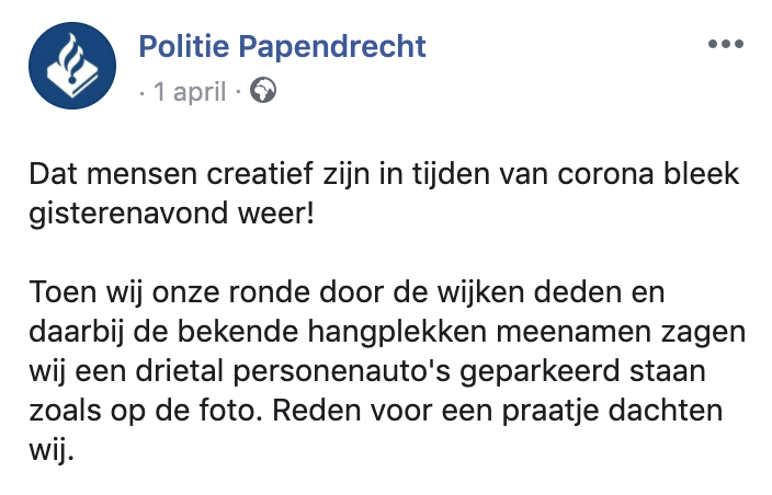 1. De politie in Papendrecht zag plotseling een groepje vreemd geparkeerde auto’s staan.