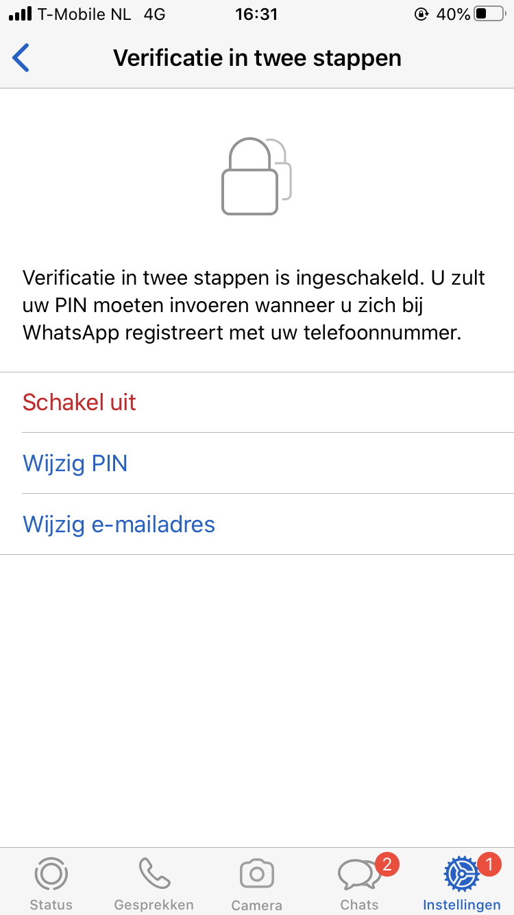 5. Daniël’s advies: geef NOOIT je inlogcode aan een ander door. In dit geval gaat het om WhatsApp, maar ze kunnen natuurlijk ook je Facebook of Instagram proberen te hacken op dezelfde manier. Bovendien heeft Daniël zelf nergens zijn telefoonnummer als recover-optie om deze aanvallen te voorkomen. Om WhatsApp nog beter te beveiligen kun je een extra beveiliging in de vorm van een pincode instellen. Dus na het overnemen van de 06 zouden de oplichters dan ook nog die pincode moeten hebben. Dit stel je als volgt in: WhatsApp > Instellingen > Account > Verificatie in twee stappen.