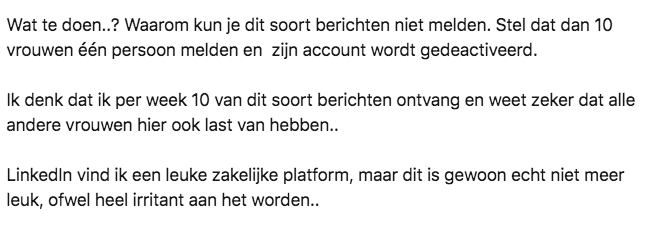 LinkedIn is een fijn platform om je professionele netwerk te vergroten of bijvoorbeeld een baan te vinden. Maar deze vrouw krijgt regelmatig berichten in haar inbox die weinig te maken hebben met professionaliteit. Ze spreekt zich uit in een post en veroorzaakt een discussie in de comments.
