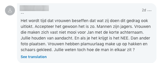 7. Helaas zijn er ook reacties van mensen die de schuld volledig bij de vrouw leggen.