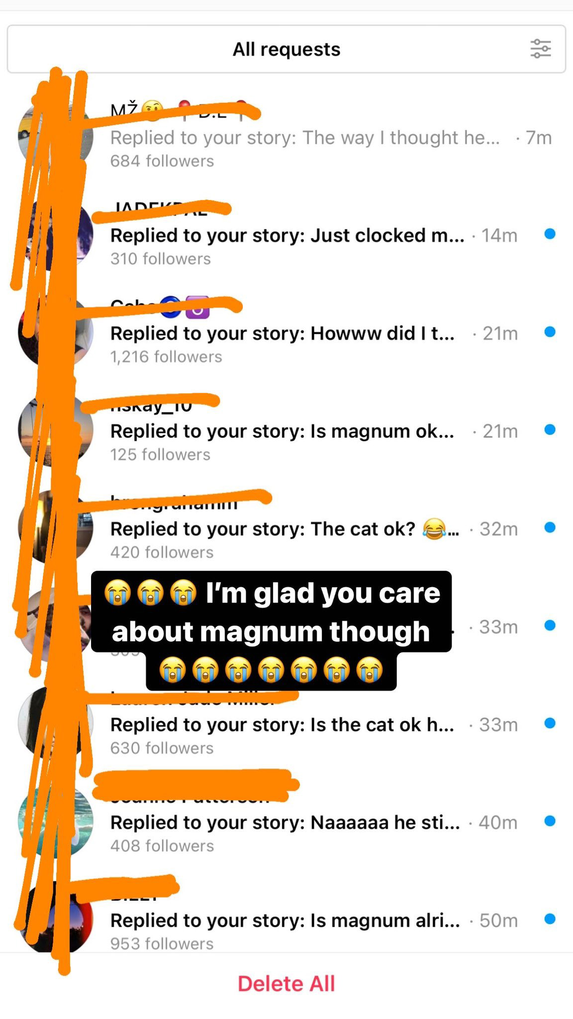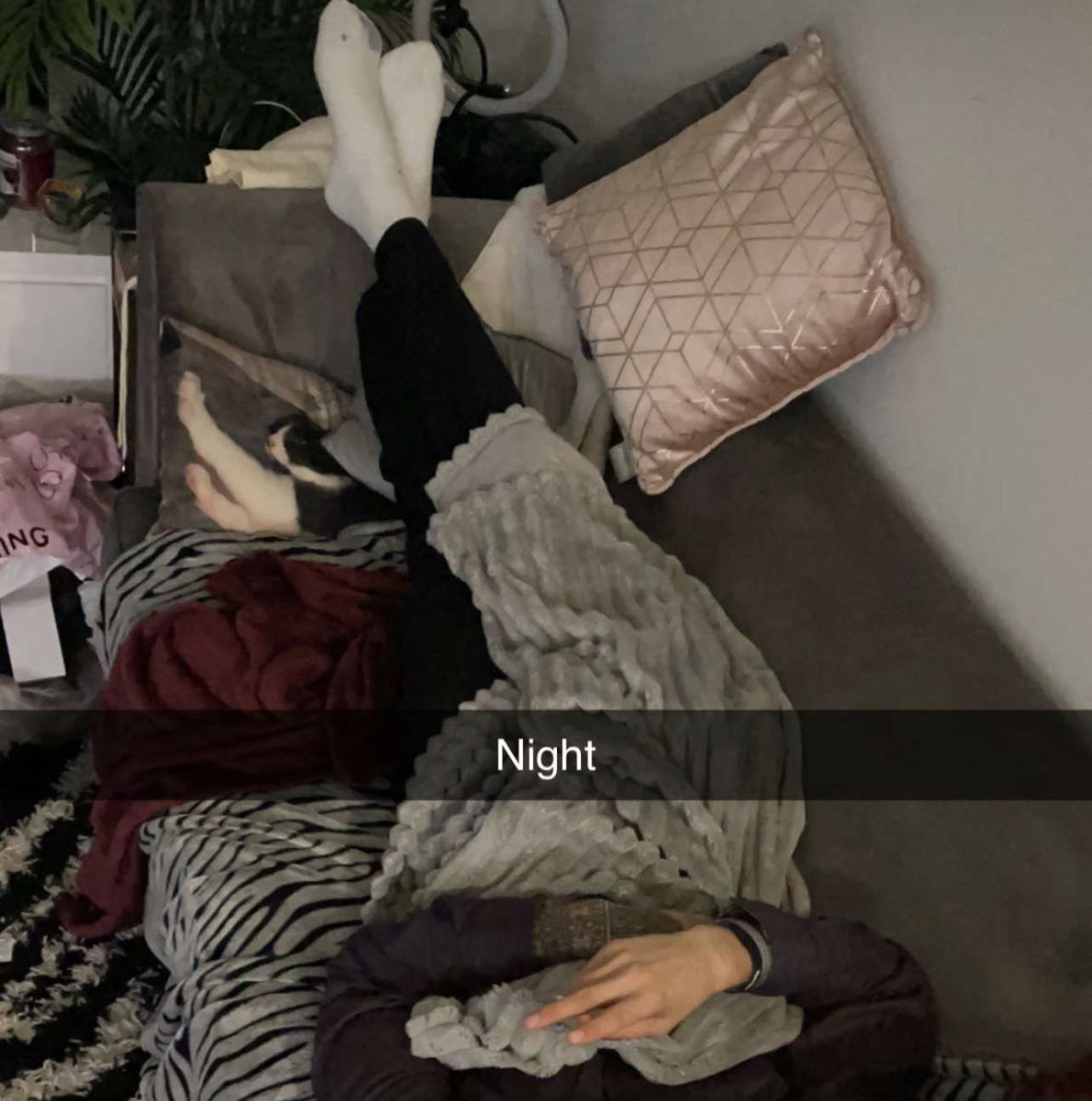 Relaxed, een lekker avondje bank hangen. Fotootje maken, en de rest van Instagram wordt jaloers. Waarschijnlijk de gedachte die Snoochie Shy had toen zij dit op haar Instagram story plaatste. De volgende ochtend werd ze wakker in een zee van dm’s, over hoe ze haar kat plette. Maar al snel genoeg bleek dat de paniek voor niets was.