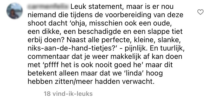 Na de commotie over de reactie van LINDA. in de comments onder de post, vroegen wij LINDA. of ze hier een laatste woord op hadden. Hoofdredacteur Karin Swerink mailde ons het volgende: