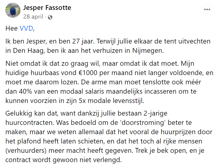 Een bron van irritatie, frustratie, machteloosheid en weerzinwekkende bedragen: De Nederlandse huizenmarkt. Sylvie deelt op LinkedIn een bericht van Jesper uit april. Opnieuw gaat het bericht viral, wat misschien wel laat zien dat dit onderwerp nóg relevanter is geworden. Jesper laat op deze manier zijn kant van de huizenmarktgekte zien, en zijn duidelijke taal maakt ontzettend veel los.