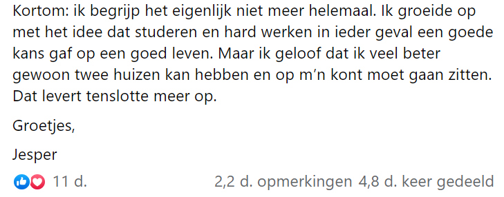 10. We stelden Jesper een paar vragen, naar aanleiding van zijn bericht dat opnieuw kneiterviral gaat. En er niet minder actueel op is geworden.