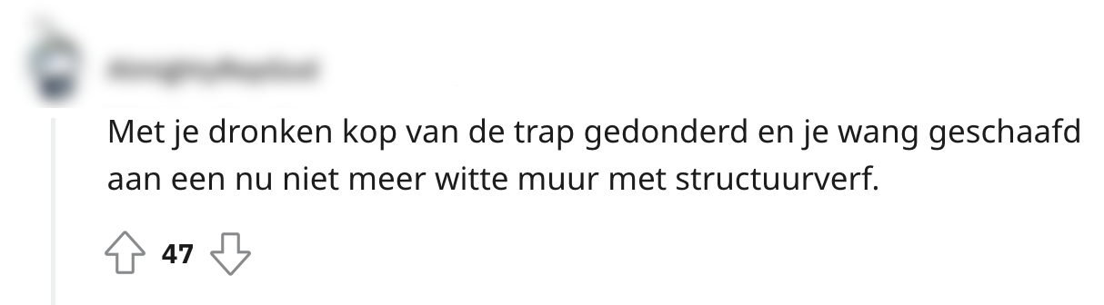 Wanneer je een onnozele blunder begaat, verdwijn je het liefst van de aardbodem. In de meest ideale situatie heeft niemand dit voorval gezien en kan je verder gaan alsof er nooit iets is gebeurd. Maar wat als je er bijvoorbeeld verwondingen aan over hebt gehouden? Leg dan maar eens aan vrienden, familie en collega’s uit hoe onhandig je bent geweest. Op Reddit vraagt iemand die in zo’n situatie is beland om hulp. Deze persoon heeft een schram opgelopen tijdens een wandeling, maar wil aan collega’s liever een spannend verhaal vertellen. Gelukkig komen mensen al snel met de meest creatieve smoesjes.