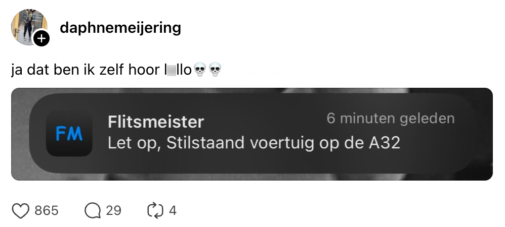 Weggebruiker krijgt een erg confronterende melding van Flitsmeister