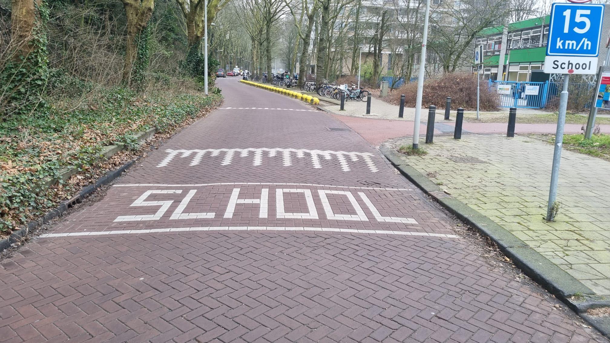 Een foutje zit in een klein hoekje. Zo kun je als voetballer net op een cruciaal moment de bal naar de verkeerde speler passen, of als architect de deuren net naar de verkeerde kant heeft getekend. Toch zijn sommige fouten net iets opvallender dan andere. Zo maakte deze stratenmaker een kleine spelfout in de buurt van een school, en die krijgt van voorbijgangers een dikke onvoldoende.