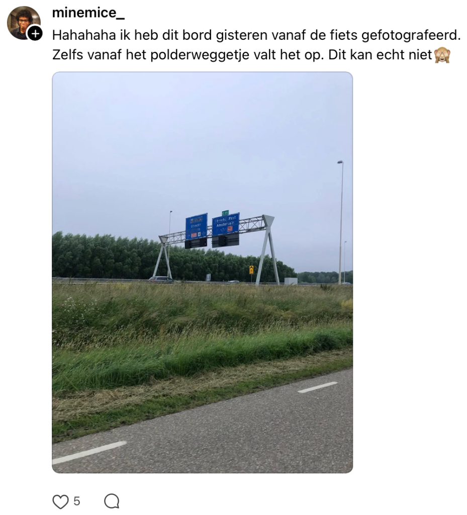 2. Rijkswaterstaat zal wel een bord voor z’n kop hebben.
