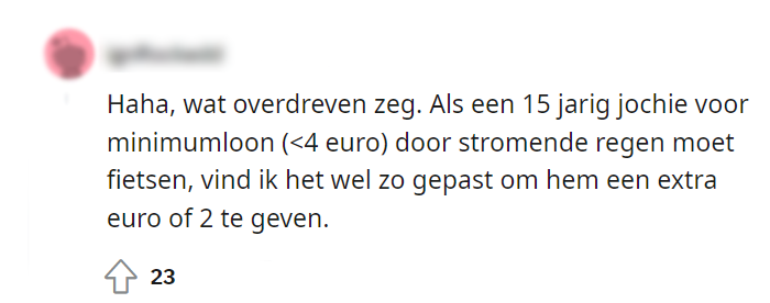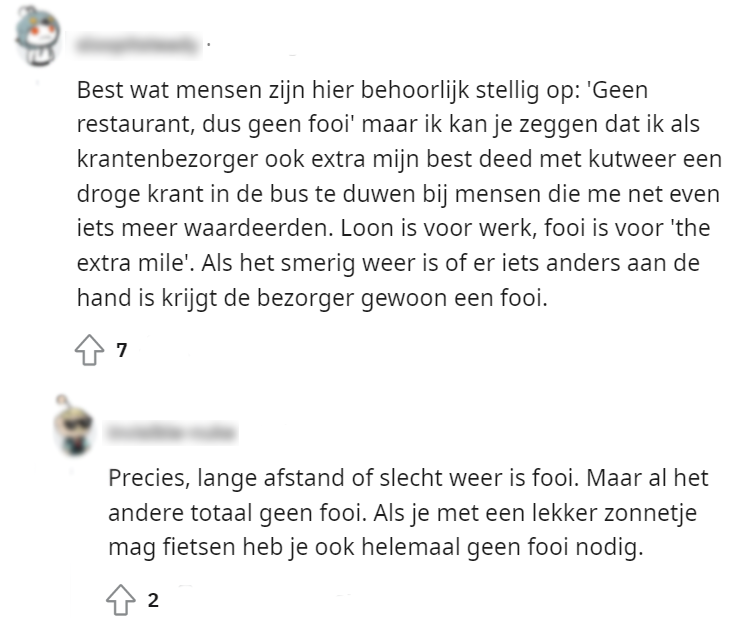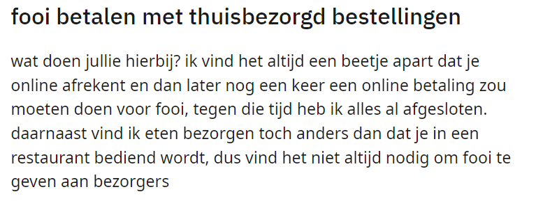 2. Veel mensen zijn het ermee eens dat het geven van fooi aan bezorgers niet nodig is.