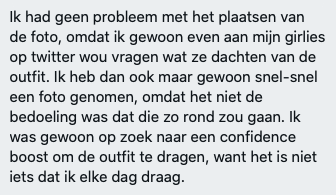 Je wil het misschien niet, maar veel mensen voelen zich toch nog onzeker over een bepaalde outfit. Ze vragen zich bijvoorbeeld af of hun lichaamstype wel geschikt voor een bepaald kledingstuk (als jij je er fijn in voelt, dan is het altijd geschikt voor je!). Ook Wenckie heeft zo haar onzekerheden en deelde deze met Twitter, maar kreeg er juist heel veel lof en liefde voor terug. Natuurlijk waren er ook negatieve reacties, maar Wenckie vertelde hoe ze hiermee omging en spoiler alert: ze heeft de leuke outfit alsnog gedragen!