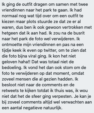 2. Ze vertelde hoe het was om de foto te posten.