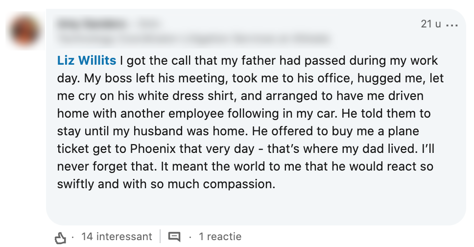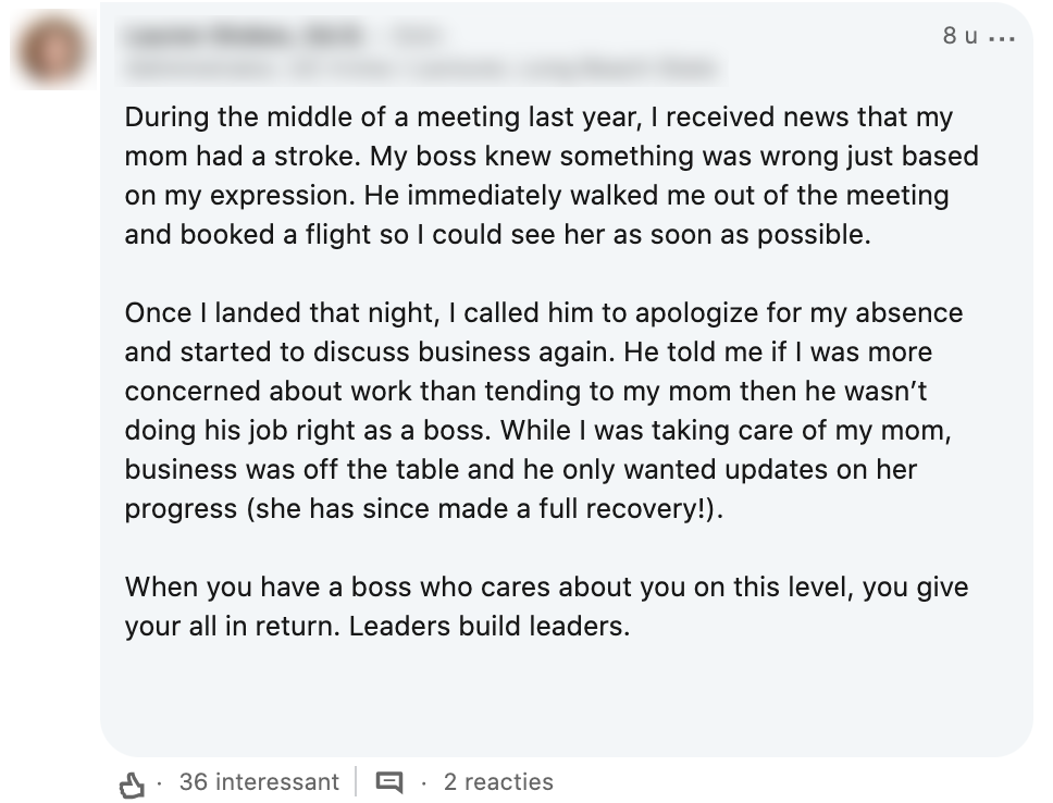 Vrouw gaat viral op LinkedIn met hartverwarmend verhaal over werkgever