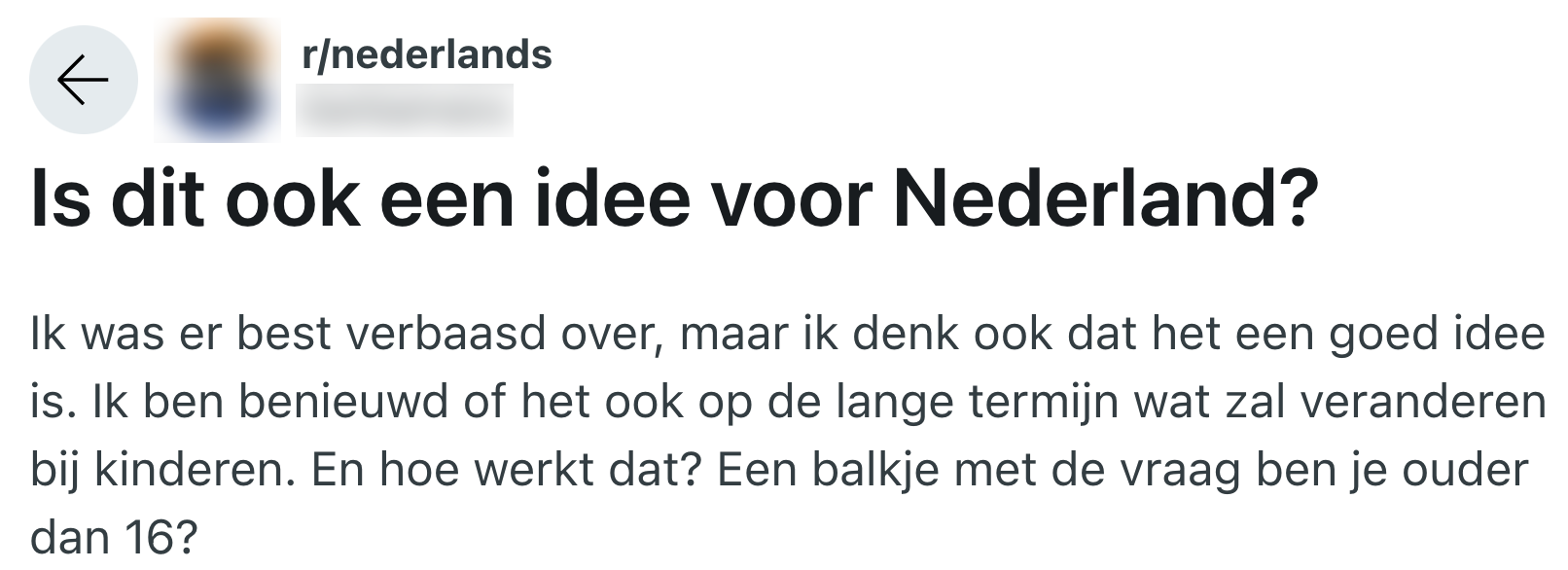 1. Op Reddit wordt gediscussieerd of deze wet rondom Social Media ook voor Nederland geschikt zou zijn.
