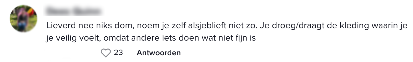 5. Uiteindelijk zou iedereen gewoon kleding aan moeten kunnen trekken waarin ze zich fijn voelen, zónder rekening te moeten houden met het gedrag van een ander.