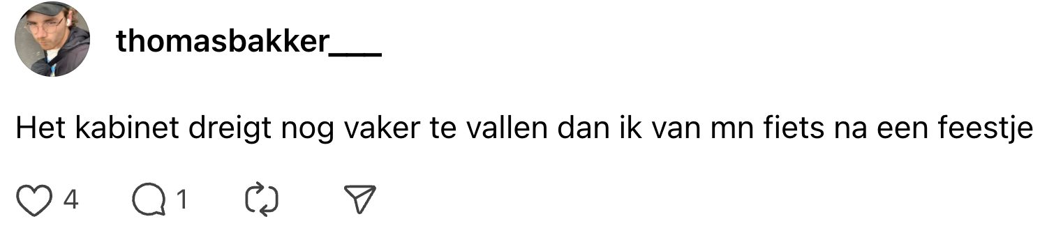 6. Aangezien het vorige kabinet in dezelfde periode viel, moeten we er misschien maar een nationale feestdag van maken…
