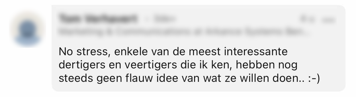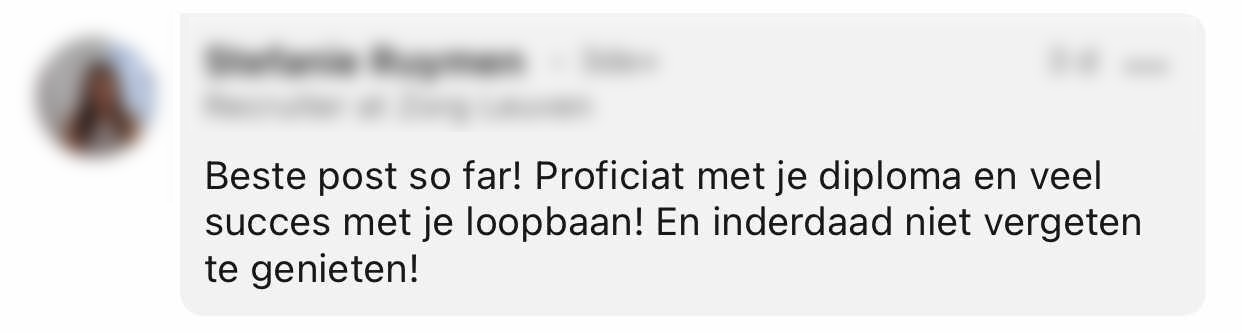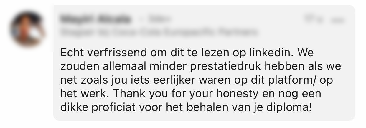 LinkedIn is het Facebook van de carrières. Mensen plaatsen maar al te graag wat ze allemaal bereikt hebben en hoe trots ze daarop zijn. Dat is terecht, maar is het ook oprecht? William behaalde onlangs zijn master aan KU Leuven in België en post daarover op LinkedIn, maar zijn bericht lijkt in niets op alle andere berichten van geslaagden op het platform.