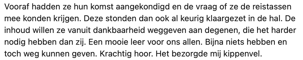 6. Ze vonden dat de spullen die Wim voor ze had bewaard, nu ergens anders harder nodig waren. Daarom besloot het Iraanse gezin het kleine beetje dat ze hadden met anderen te delen.
