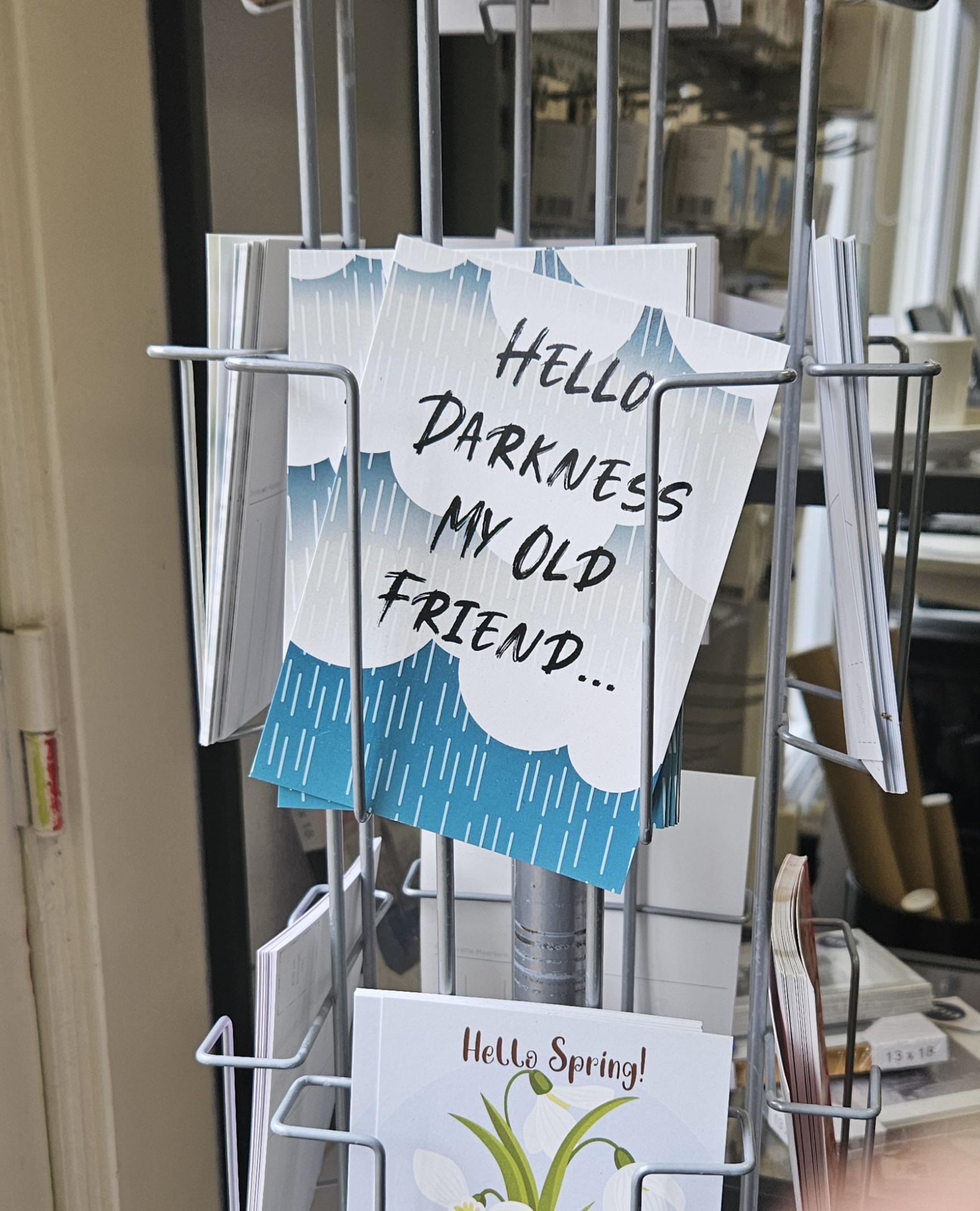 Winkelbezoeker tast in het duister door treurige boodschap op kaart