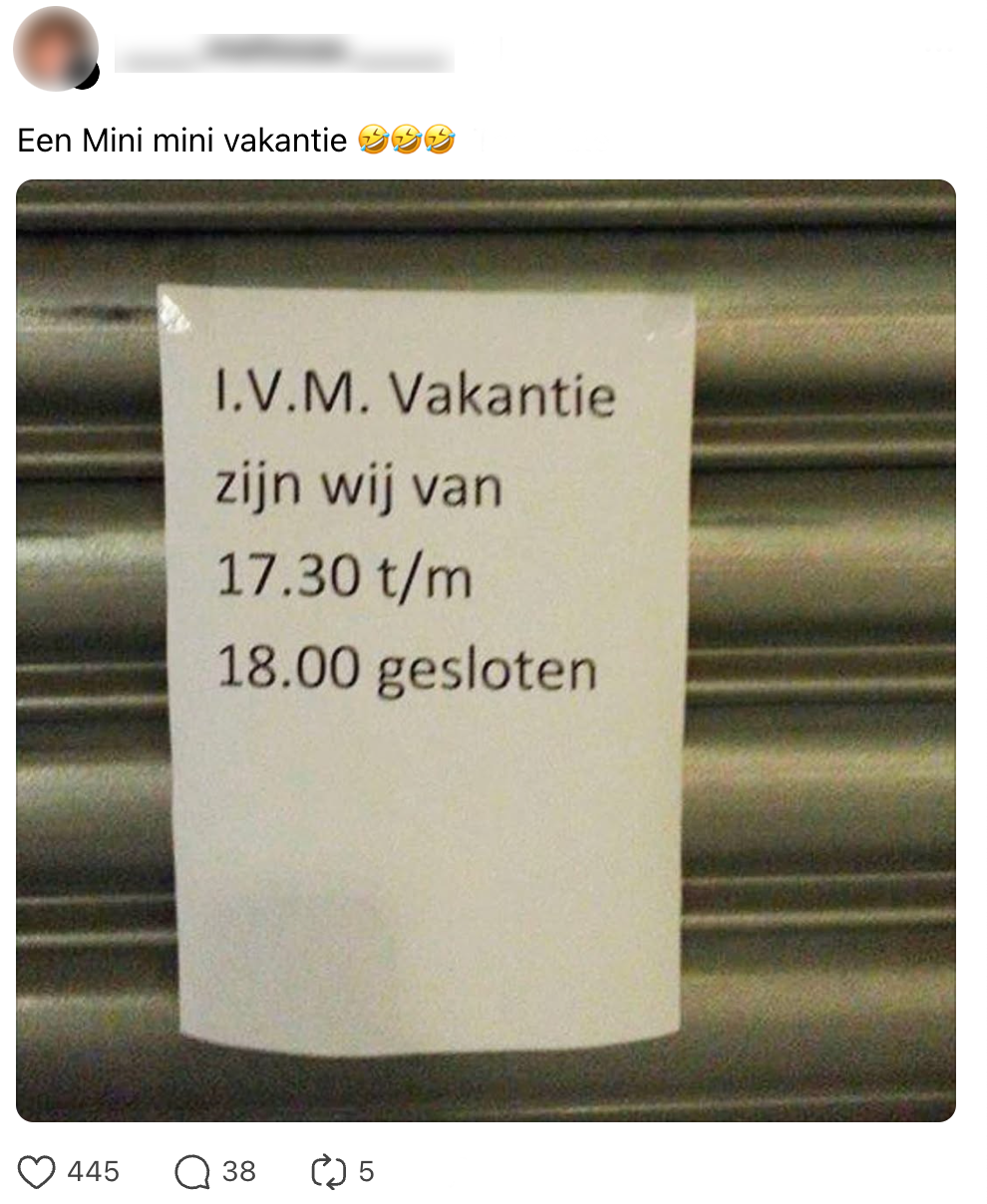 Winkeleigenaar gaat ‘op vakantie’ en hangt dubieus briefje op voor klanten