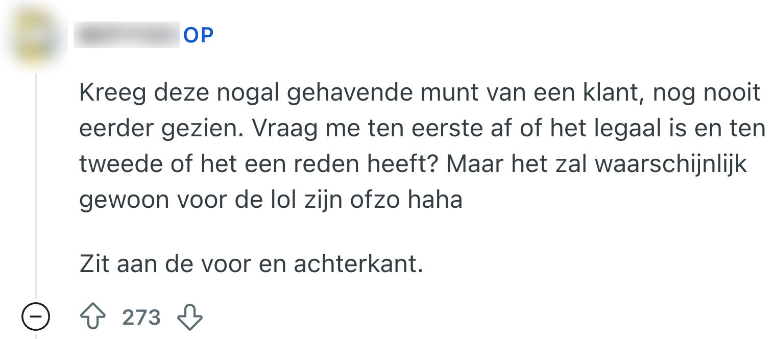 Winkelmedewerker krijgt opvallende munt in hand gedrukt en kan vorm niet plaatsen