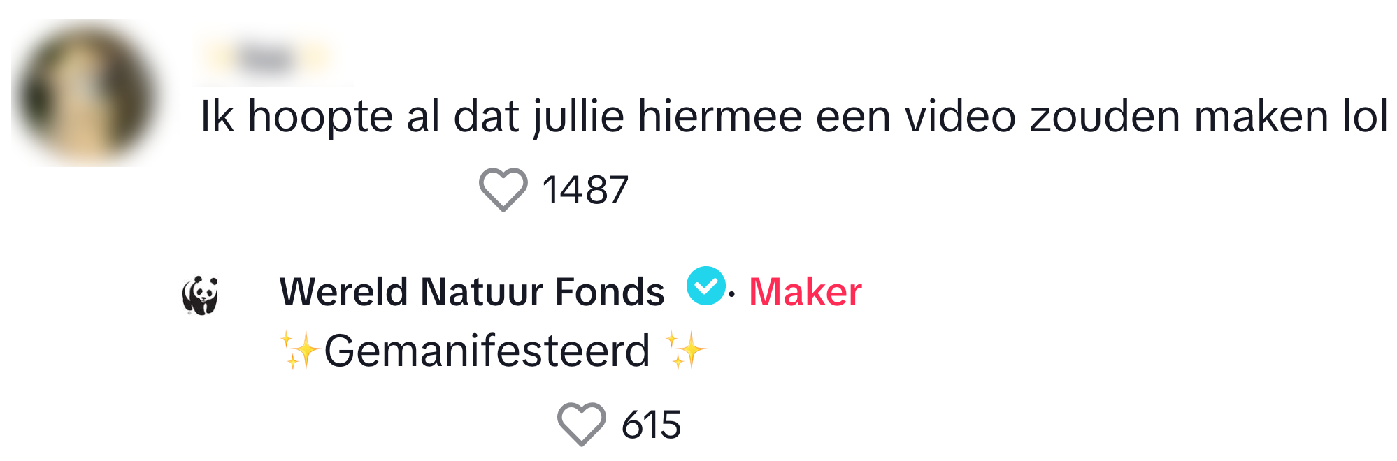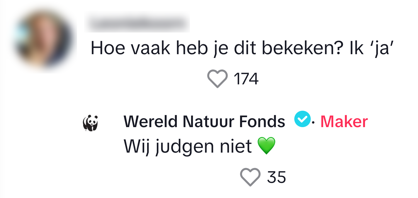 Omdat inmiddels de hele wereld en haar moeder op TikTok zit, is het niet raar dat sommige video’s en sounds helemaal viraal gaan. Het resultaat: iedereen heeft ze wekenlang in z’n hoofd. Het WNF besluit er nog een schepje boven op te doen en plaatst een beestachtige inhaker op een van de nieuwste Nederlandse virale video’s.