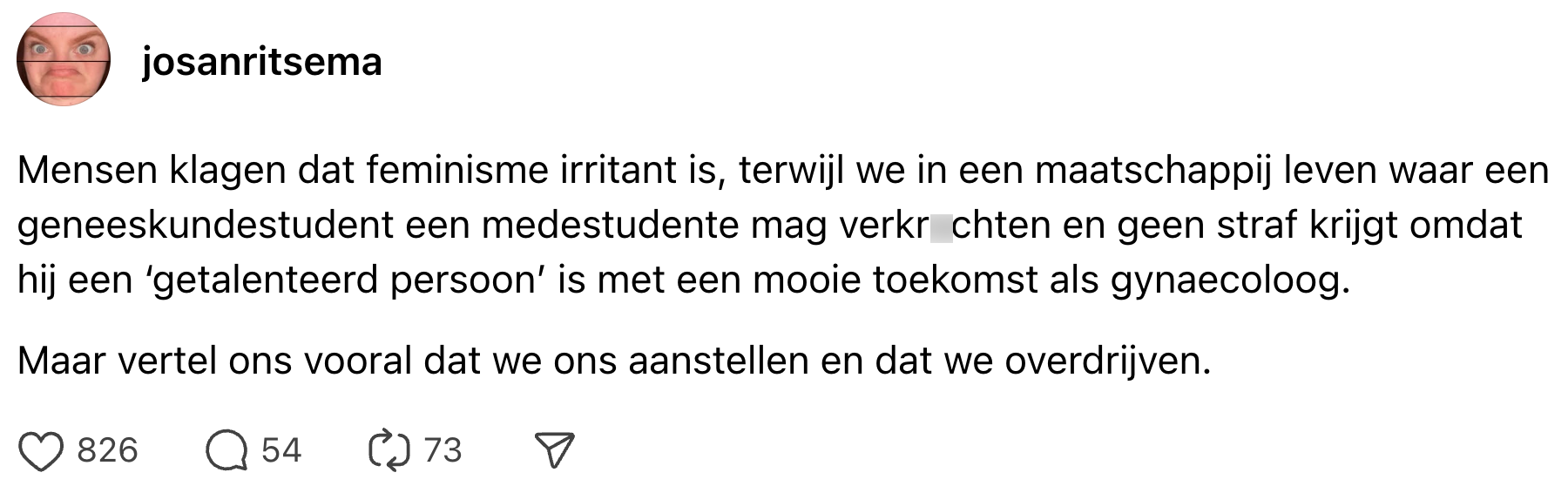 Mocht je het gemist hebben: heel Nederland en Vlaanderen zijn in rep en roer vanwege het rechterlijk oordeel in een Leuvense misdrijfzaak. De dader, een mannelijke gynaecoloog in spé, werd wel schuldig bevonden. Hij kreeg echter geen straf, omdat dit zijn toekomstige carrière in de geneeskunde zou kunnen belemmeren. Veel Nederlanders en Vlamingen zijn enorm verbaasd over de ondenkbare uitspraak en uiten nu massaal hun woede online.