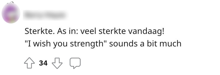 7. Toch zou menig Nederlander deze Engels zin gebruiken om iemand sterkte te wensen.
