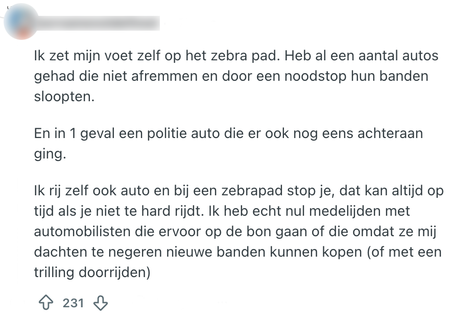1. Deze Reddit-gebruiker is helemaal klaar met asociale automobilisten bij het zebrapad en geeft vol gas.
