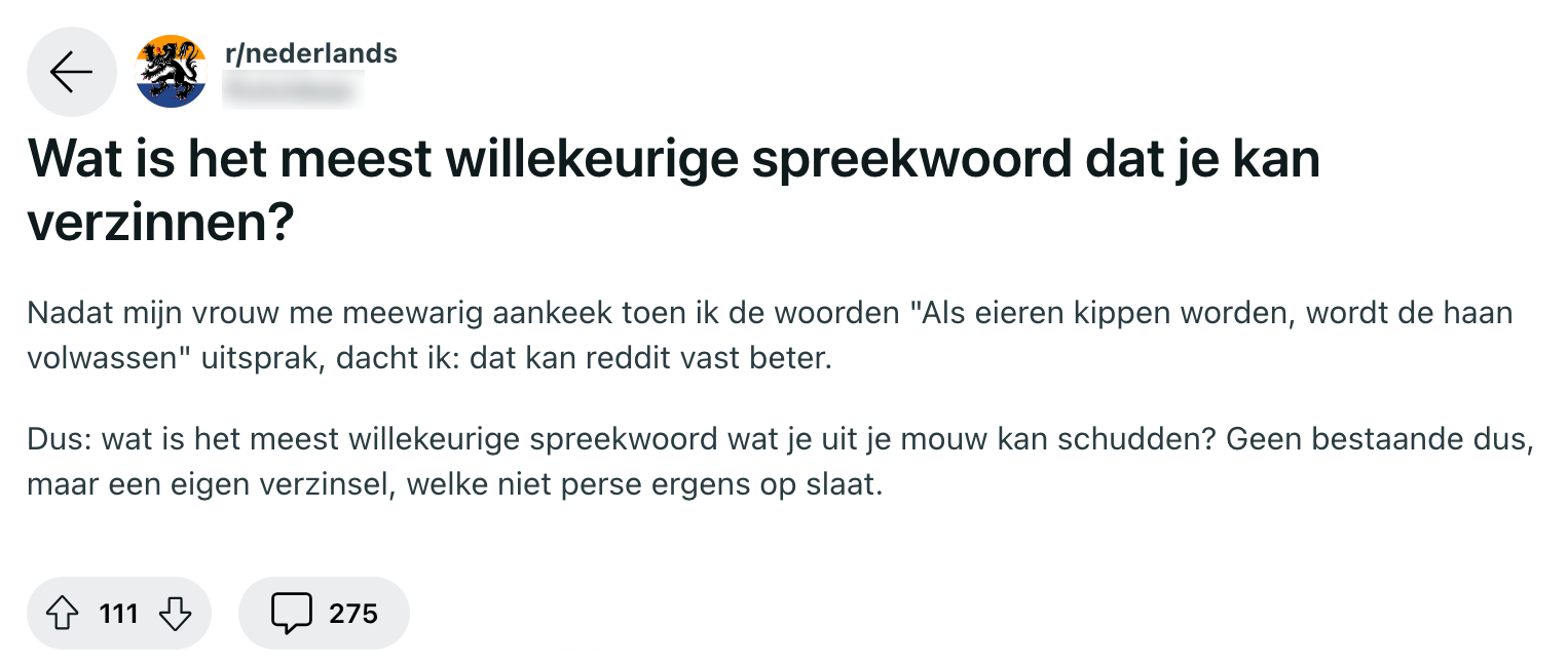 Het leren van de Nederlandse taal is voor menig expat een pain in the ass. Wanneer je in godsnaam de ‘dt’ moet gebruiken, blijft immers zelfs voor sommige Nederlanders één groot raadsel. En dan hebben we het nog niet eens over spreekwoorden gehad, want daar valt al helemaal geen touw aan vast te knopen. Koekjes hier, boeren met kiespijn daar: wie dat bedacht heeft, kan de pot op. Maar goed: wat diegene kan, kunnen anderen ook. Daarom was deze Reddit-gebruiker benieuwd naar het meest willekeurige spreekwoord wat Nederlanders kunnen verzinnen. En geloof ons: de antwoorden stellen niet teleur.