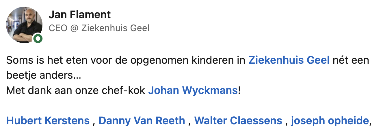 1. De kindermaaltijd die de CEO van ziekenhuis Geel deelt, is echt om op te eten.