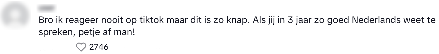 2. Mensen zijn erg onder de indruk van hoe snel Patient de Nederlandse taal onder de knie heeft gekregen.