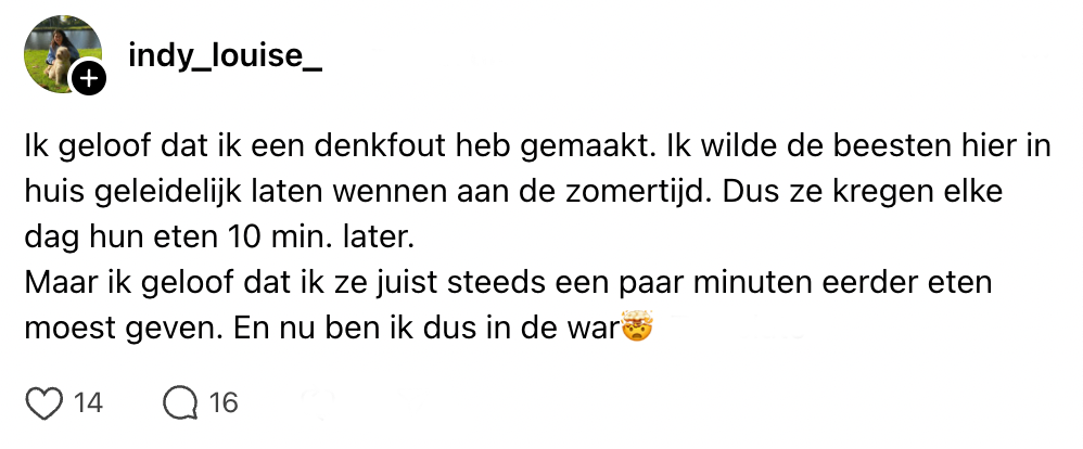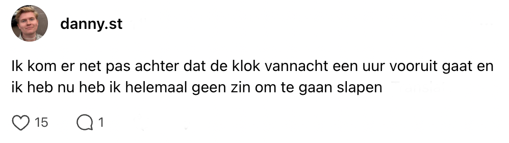 1. Bij sommige Nederlanders verloopt de voorbereiding op de zomertijd niet zo soepel als verwacht.