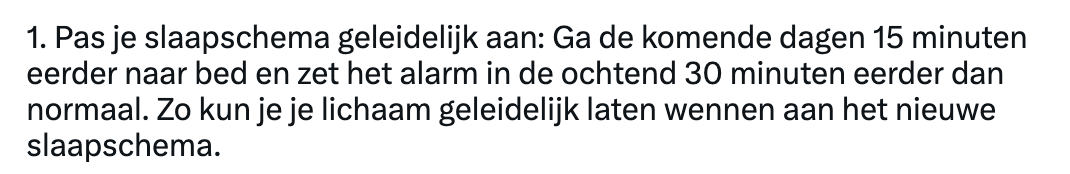 Zaterdagnacht zullen we allemaal weer een uurtje korter slapen want dan is het tijd om de klok te verzetten naar zomertijd. Ondanks dat veel van ons juist genieten van die lange dagen, slaat bij anderen de biologische klok flink op hol. Als dit laatste bij jou het geval is, dan heeft de slaapdokter zes tips om deze wisseling zo soepel mogelijk te laten verlopen.
