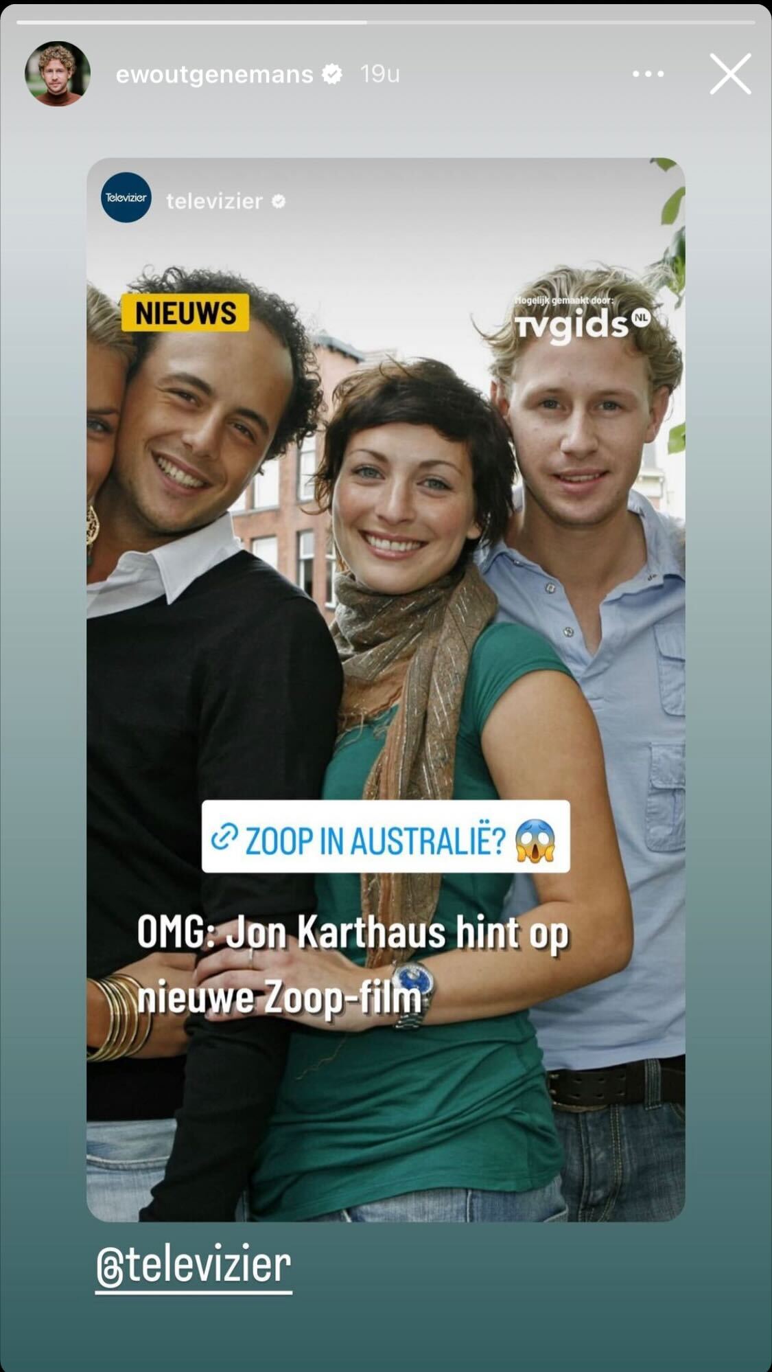 1. Regisseur Jon Karthaus heeft vandaag bevestigd dat de nieuwe film van Zoop er echt gaat komen en dat de vaste acteurs in ieder geval aan boord zijn. Is dit een droom? Ook Ewout, beter bekend als Bastiaan, deelde dit al op zijn Instagram Story.