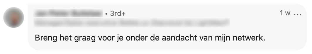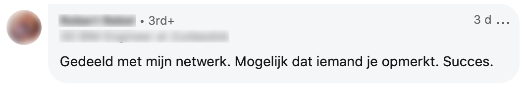2. Zijn netwerk steunt hem en deelt zijn bericht op LinkedIn.